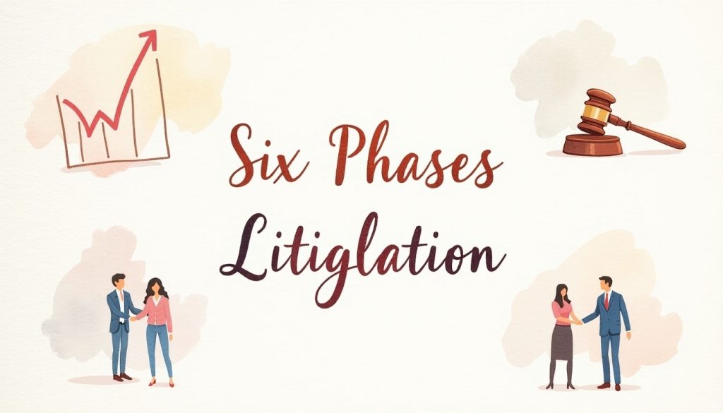 The six phases of business litigation typically include pre-litigation, pleading, discovery, trial, post-trial motions, and appeal.